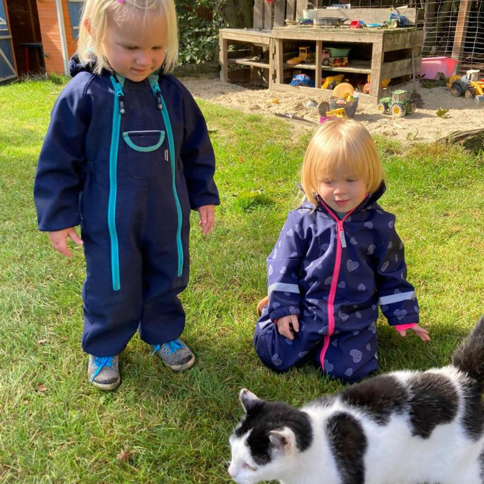 Wir gehen jeden Tag nach draußen. Ich gebe den Kindern Gelegenheit, sich selbst anzuziehen, helfe aber gerne auch, wenn es noch nicht so klappt.