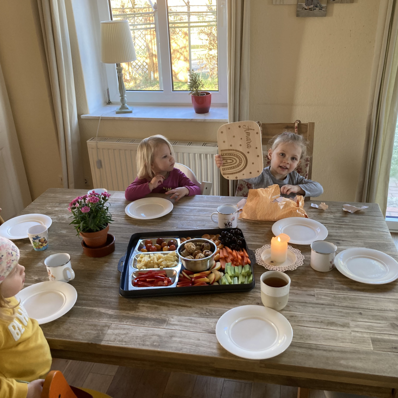 Wenn die Kinder ca. zwei bis drei Jahre alt sind, veranstalten wir ein Laternelaufen auf unserem Hof mit Martinswecken und Punsch.