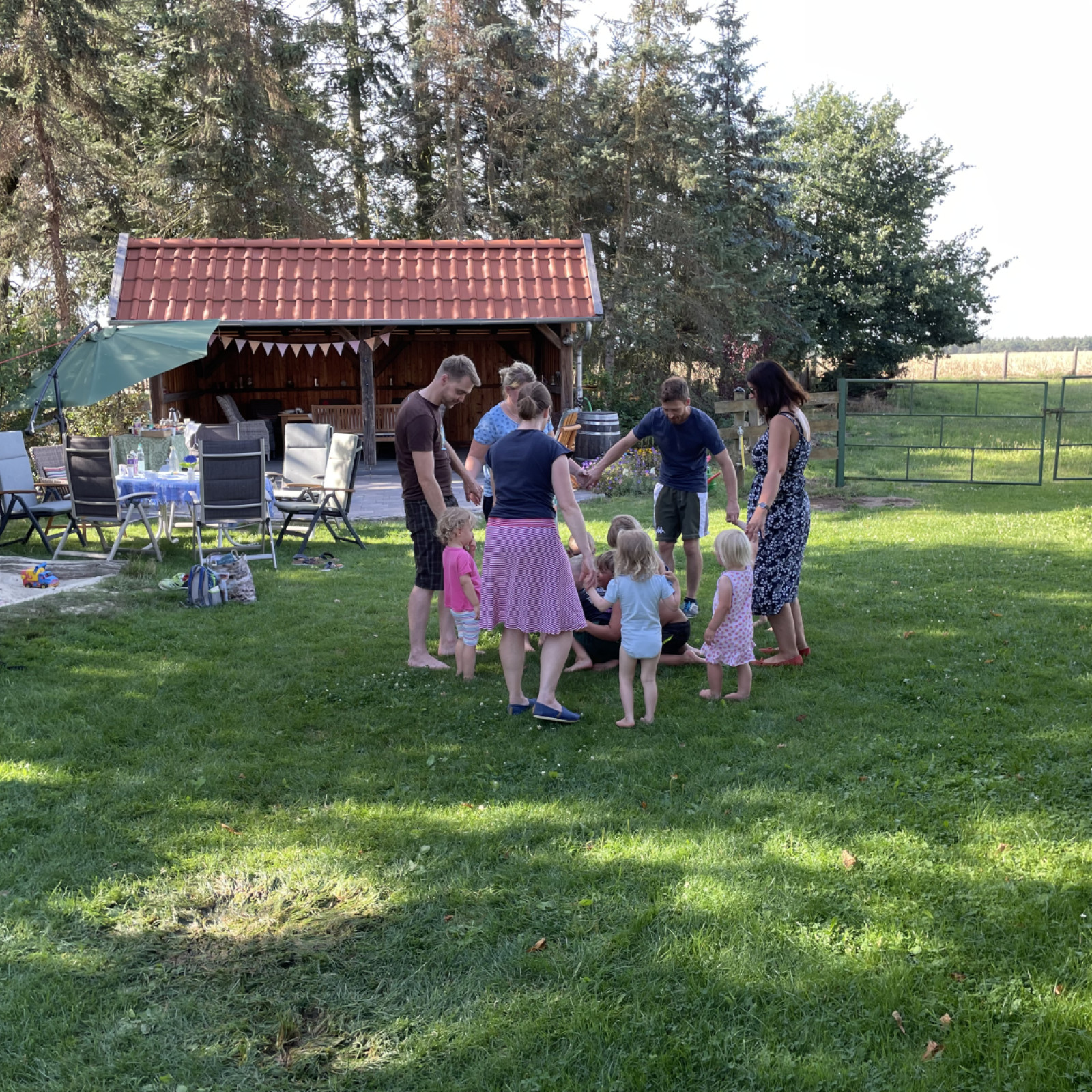 Im Sommer feiern wir gemeinsam mit den Familien der Kinder auf unserem Hof ein Sommerfest.